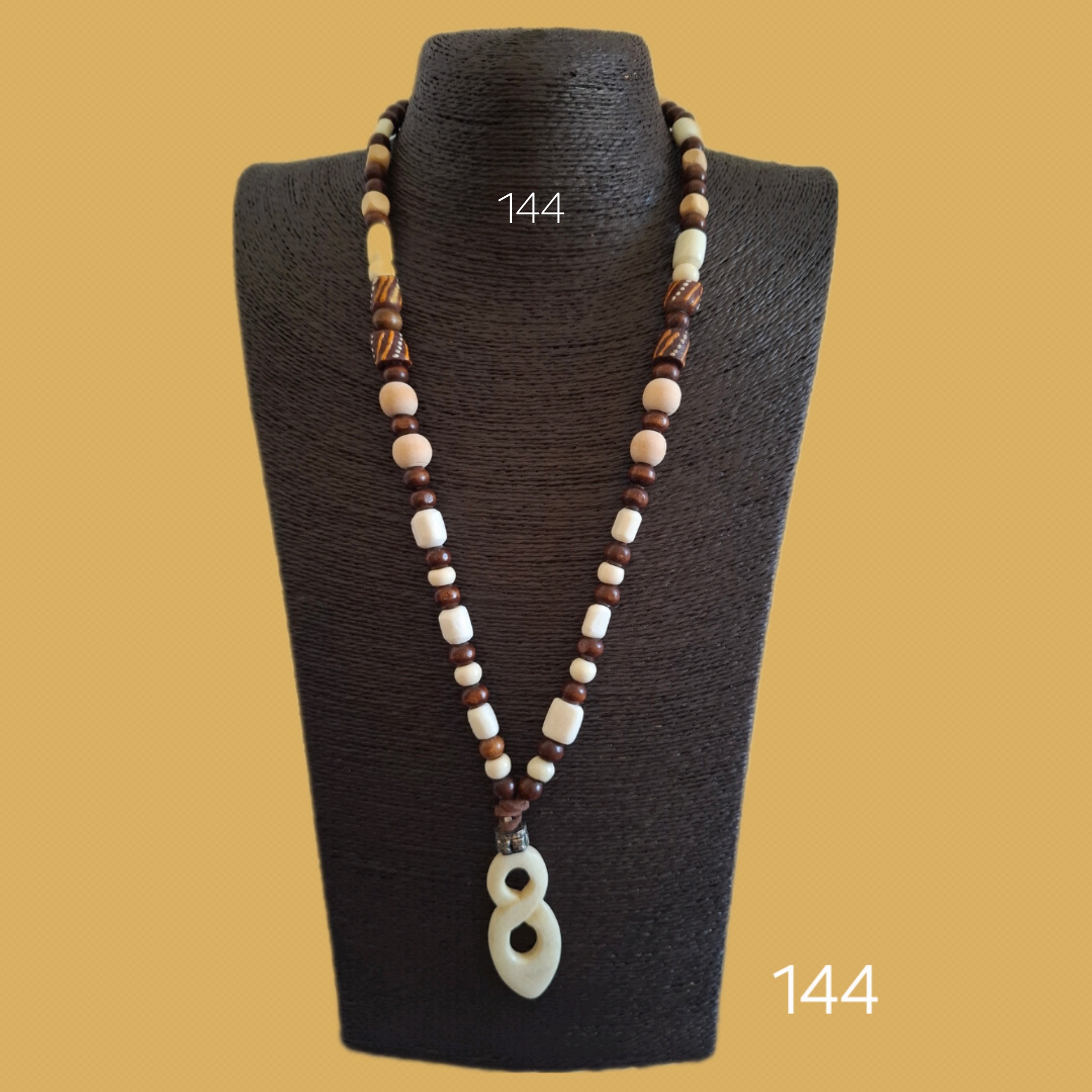 Bone pendant with Kenyan bone, wood, and Ghanain trade beads.